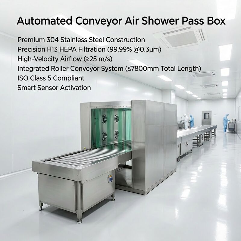 Ενσωματωμένος τροφοδοτούμενος κυλινδρικός μεταφορέας + σύστημα αερίου ντους HEPA.